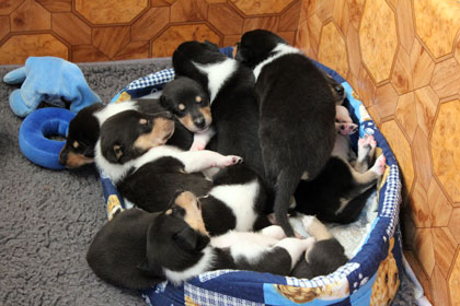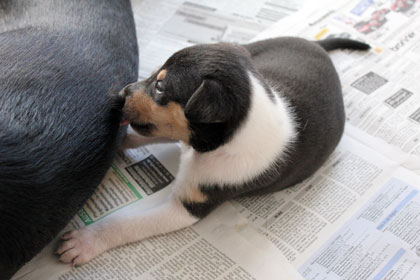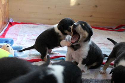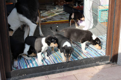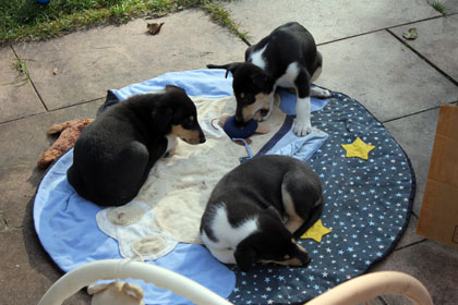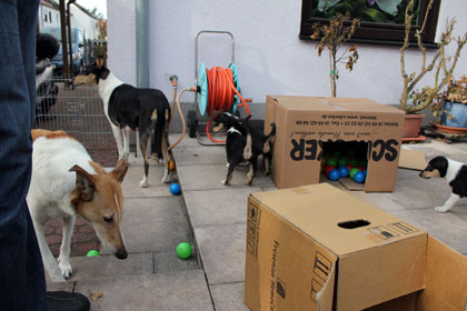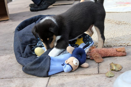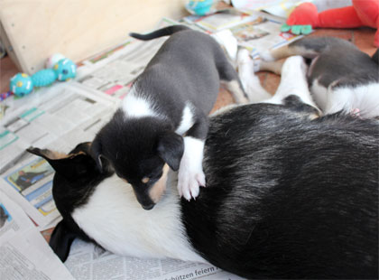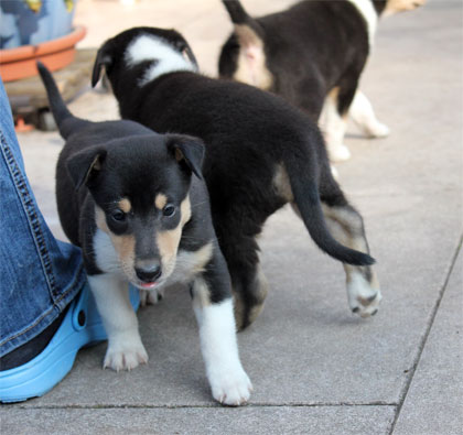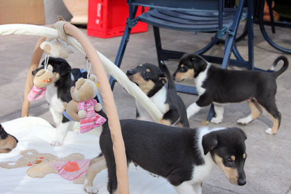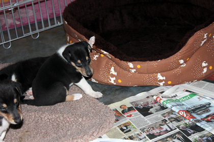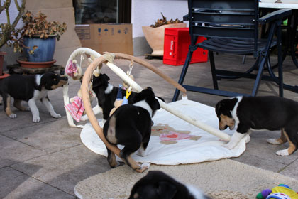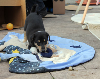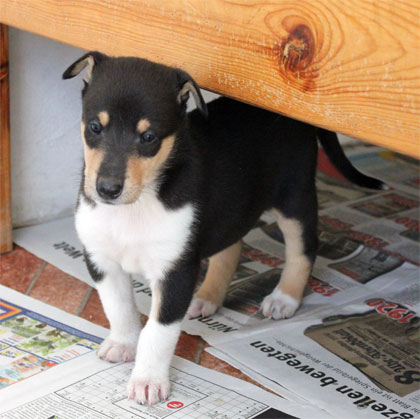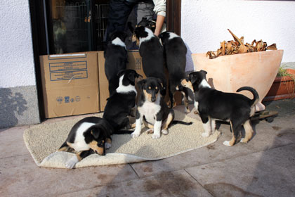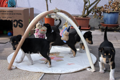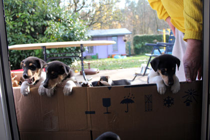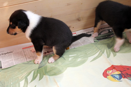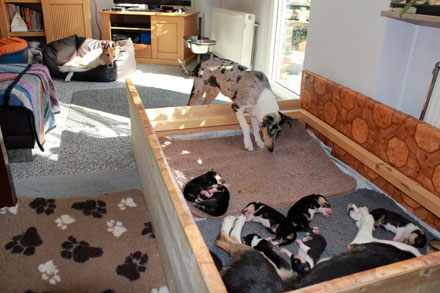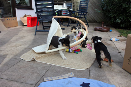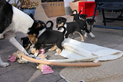 In der Zwischenzeit sind die Welpen aus ihrer Wurfkiste ausgewandert und haben sich im Welpenzimmer und im Wohnzimmer breit gemacht.