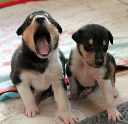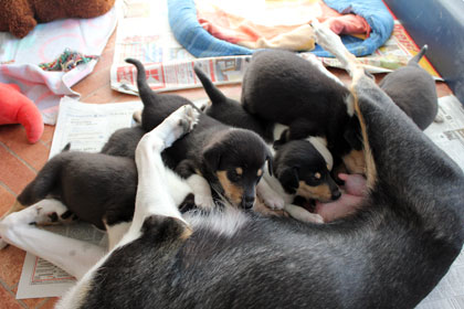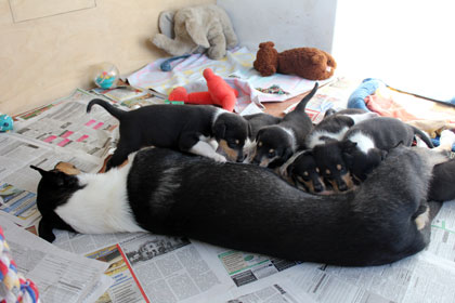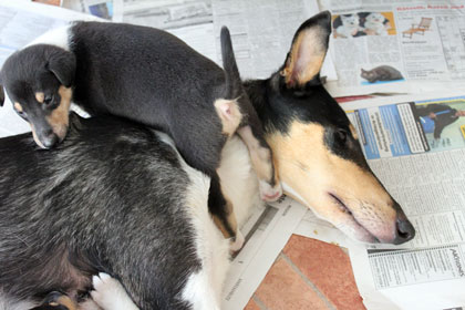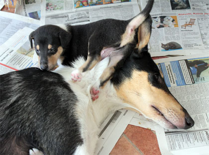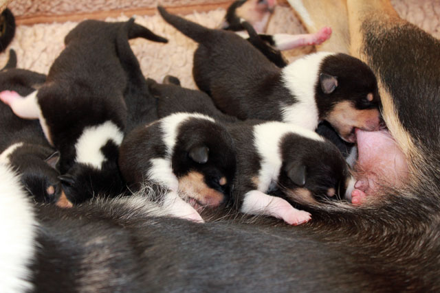 | viel Arbeit (trinken) macht die ersten Welpen müde | |