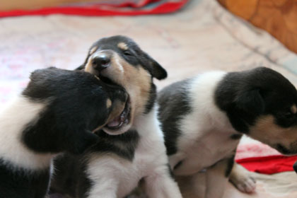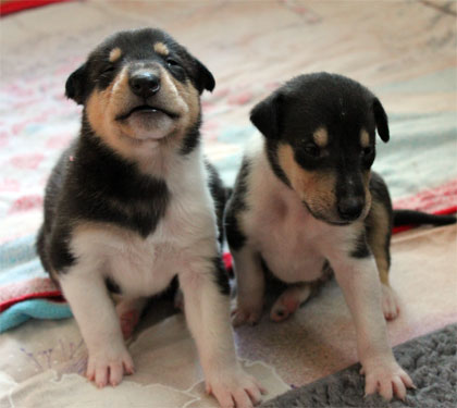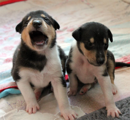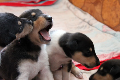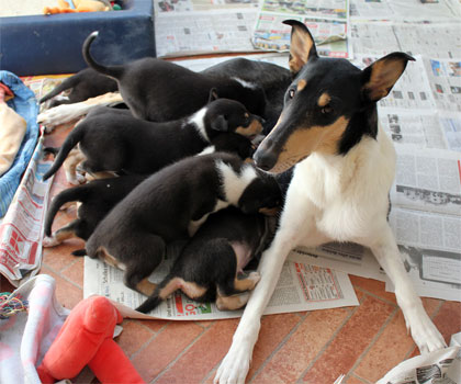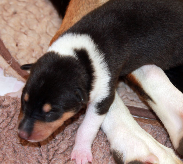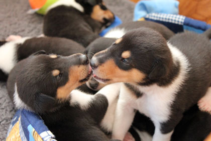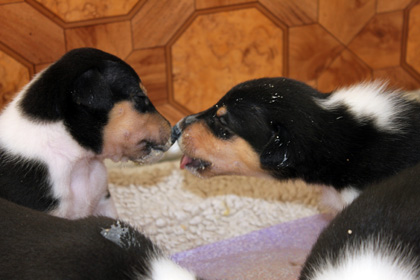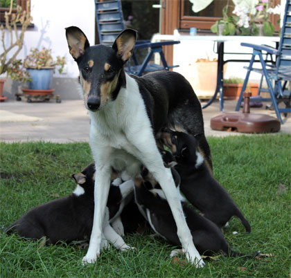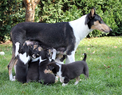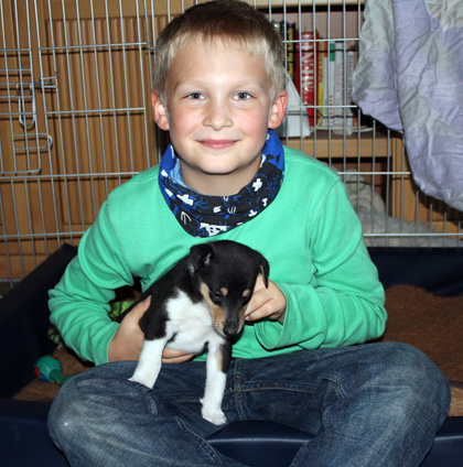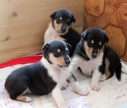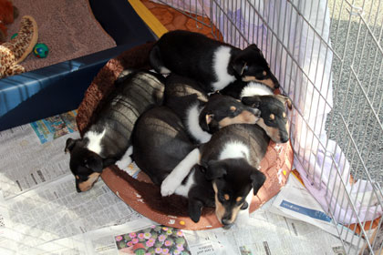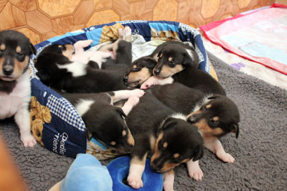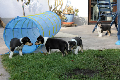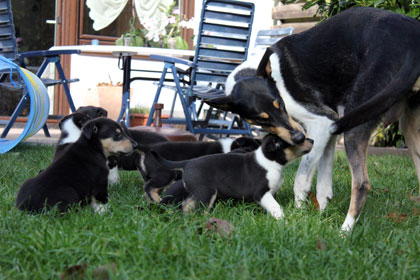 Alle Welpen sind tricolour und werden CEA frei und MDR +/+ oder +/- sein (laut Eltern Gentest).