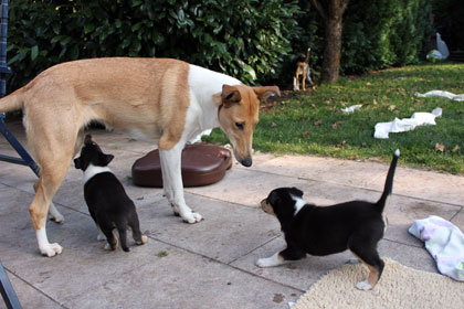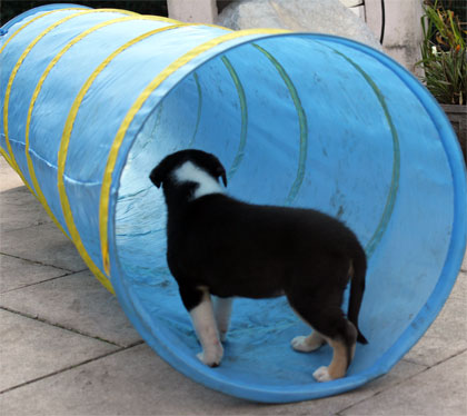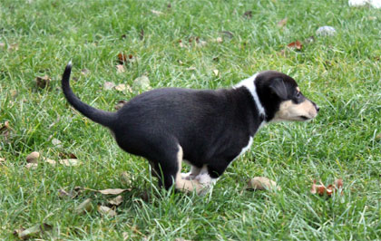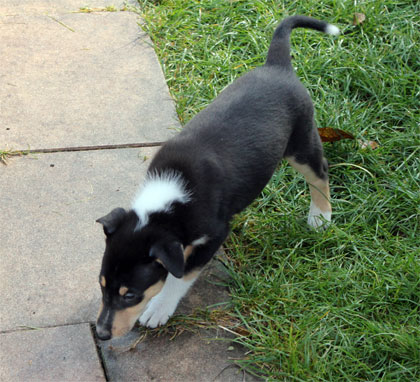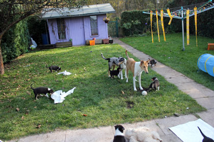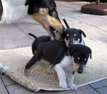 zugelassen, daß die Welpen mehrmals täglich ihren Ausflug in den Garten machen.
