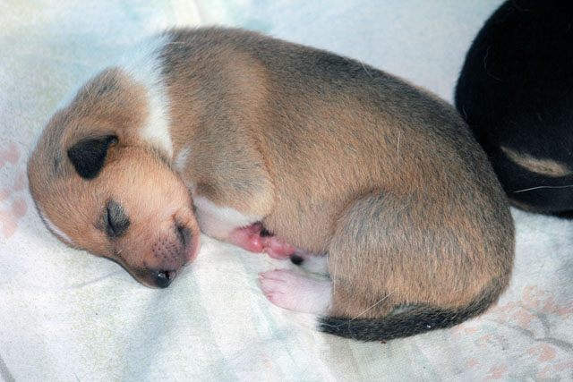 Welpe Nummer 2 wurde um 14:12 geboren mit 309 Gramm ein sable Rüde