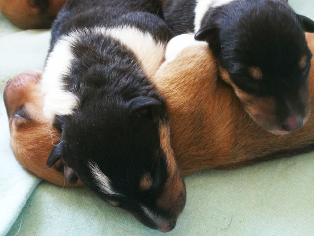 Sally hat uns 5 wunderschöne Welpen geschenkt. 2 Hündinnen sable, 1 Rüde sable, 1 Hündin tricolour und 1 Rüden tricolour.