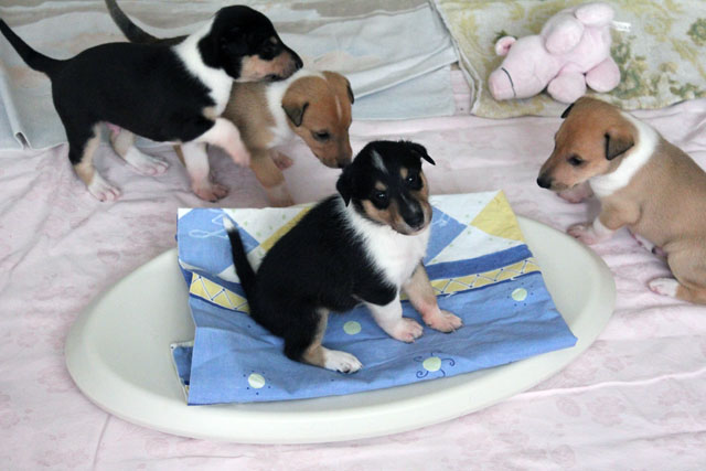 morgen werden die Welpen 8 Wochen alt. Die Zeit verging wie im Flug. Wir hatten viel Freude und Spaß mit den süßen 5 Welpen die sich prächtig entwickelt haben. Sally hat sich sehr intensive und lieb um ihre Welpen gekümmert. Sie hat die Kleinen fast bis zur 6. Woche gesäugt. Sally spielte viel mit ihren Babys. Wir haben uns bemüht die Kleinen altersgerecht zu prägen und zu versorgen.