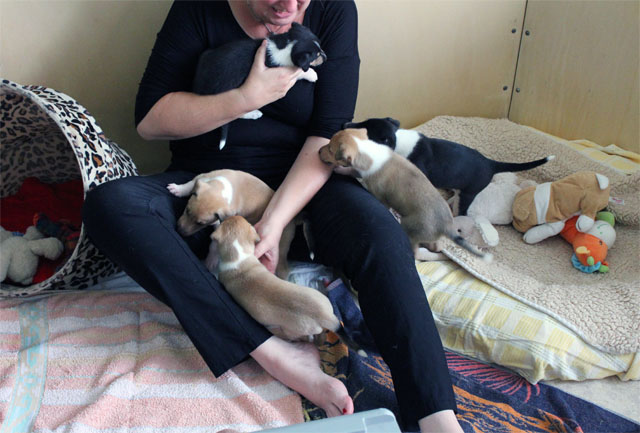 Jetzt sind die Welpen alt genug und die zukünftigen Welpenbesitzer können kommen.