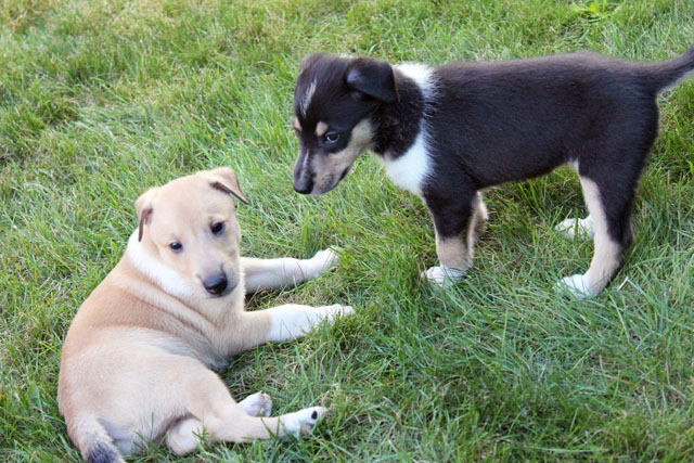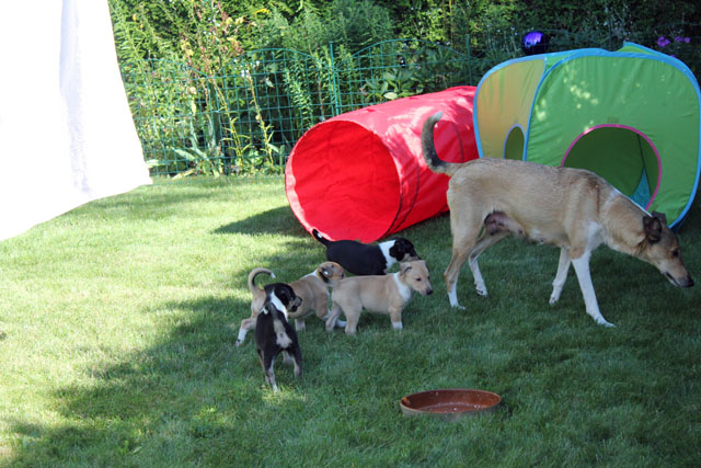 die Welpen erobern den Freilauf und spielen jetzt vermehrt.