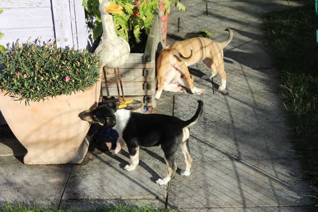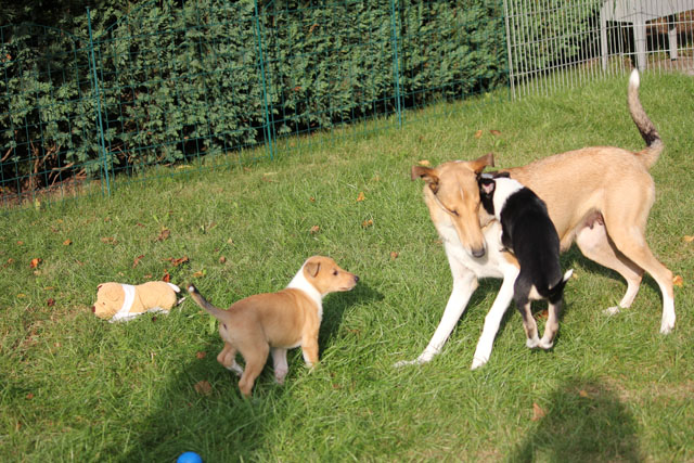Freilauf im ganzen Garten. Alles wird erkundet, jeder Winkel untersucht und natürlich ausgelassen gespielt.