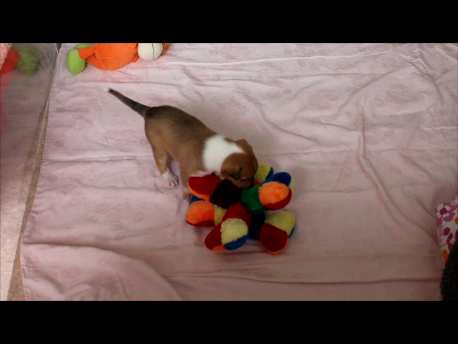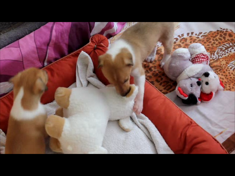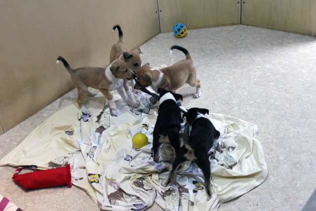 Die Welpen spielen jetzt vermehrt und die Hundebox wird gut angenommen.