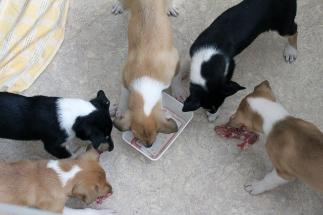 gestern gab es die erste Fleischmahlzeit. Die Bearbeitung der Videos hat leider etwas gedauert.(Es gab einen Welpen der das Fleisch verweigert hat).