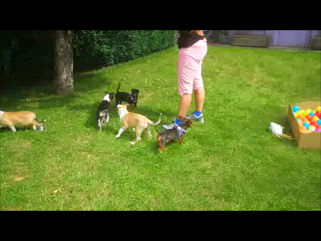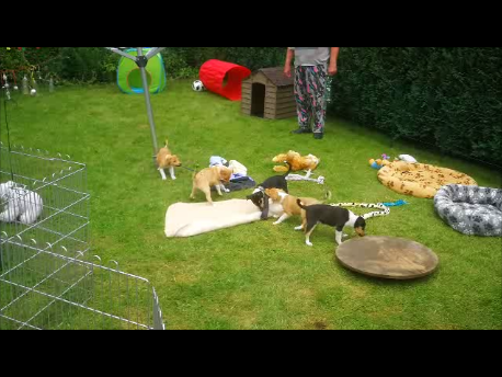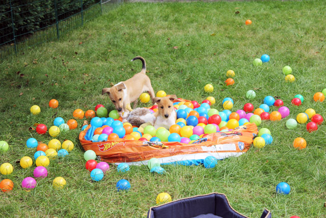 Mittlerweile sind die Welpen sobald es das Wetter zu lässt täglich in unserem Garten. Dort wird viel gespielt und getobt. Es gibt viele Spielsachen, ein Bällebad, eine "Hundehütte" in die sich die Welpen gerne aufhalten und vieles mehr zum Erleben. Ganz viele Bilder aus dem Garten gibt es auf unserem Welpenblog