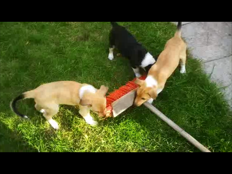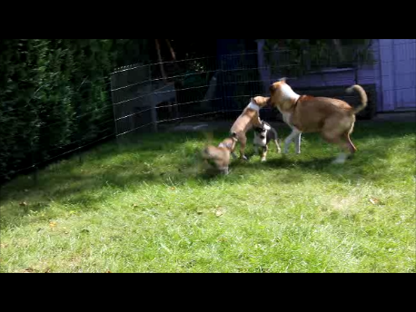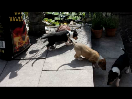 Vor allem Freyja (tricolour Hündin) die am Schluss des Videos einfach umfällt. Ich hab ja so gelacht.
