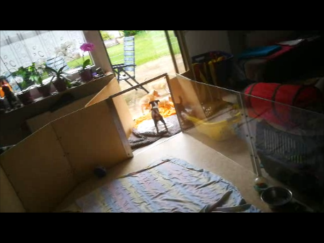 Sie sind heute in unser Wohnzimmer in ihren Freilauf gezogen. Hier haben die 5 Welpen jetzt ganz viel Platz zum Laufen und Spielen. Ich dachte schon das es die Welpen und Sally etwas stresst, aber nein. Kurz sind die Kleinen umhergelaufen und haben mit Mama Sally alles erkundet. Danach hat sich Sally in die "Kudde" gelegt und die Welpen haben fleißig an Mama´s Milchbar getrunken. Der erste Tag lief äußerst ruhig ab. Es gibt ein paar Bilder von Umzugstag und 2 Video´s.