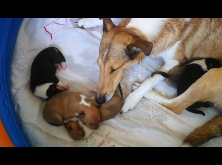 Sally hat uns nun mit ihrem letzten Welpen etwas warten lassen. Um 17:25 Uhr kam Welpe Nummer 5 mit 259 Gramm auf die Welt. Ein tricolour Rüde. Sally hat alles super alleine gemacht und ist für ihre erste Geburt sehr instinktsicher gewesen. Nun wird erst mal geschlafen und sich erholt von der anstrengenden Geburt.