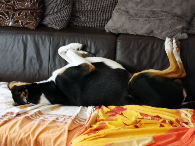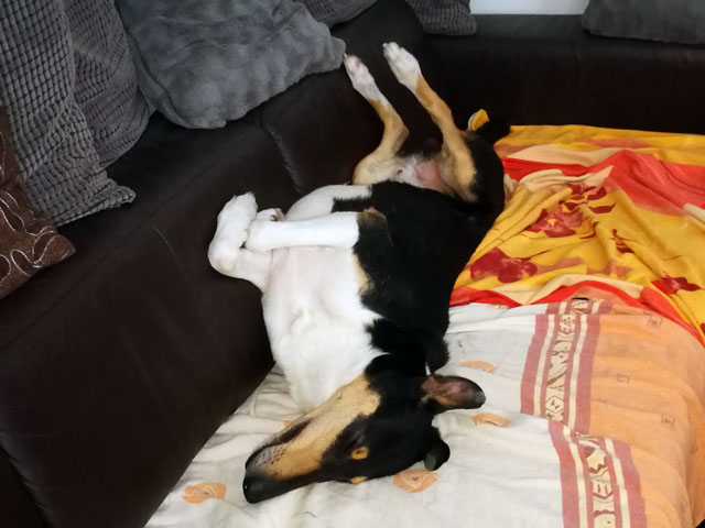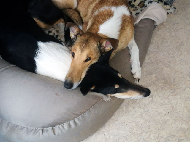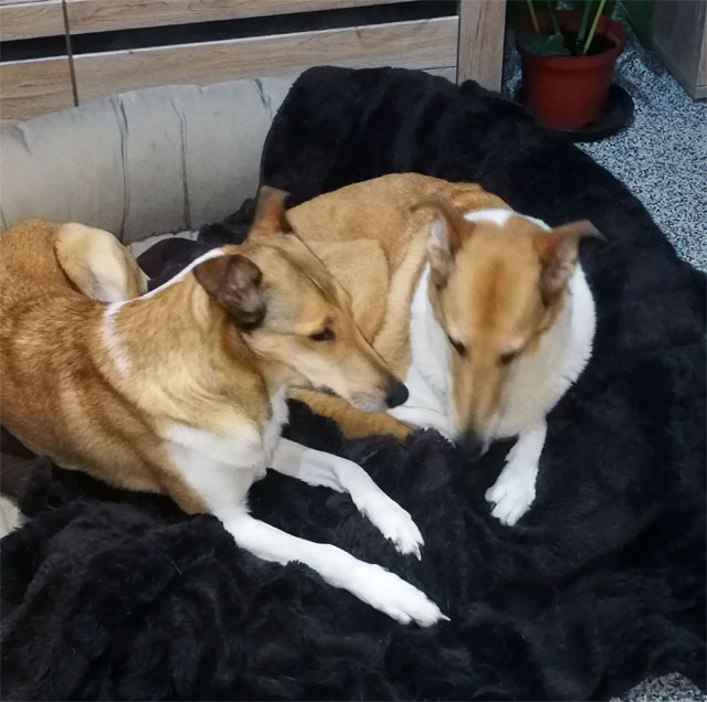 Am späten Nachmittag zeigte Sally mir das sie gerne ohne ihre Verwandschaft und nur mit mir nach oben in ihr Körbchen wollte wo Sie schläft. Na dann haben es Sally und ich es uns gemütlich gemacht.