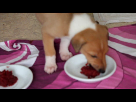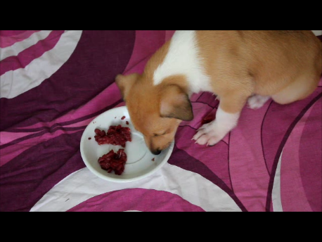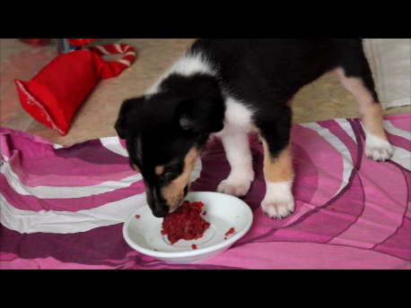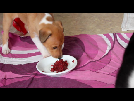 Arnora war von ihrer ersten Fleischmahlzeit begeistert und hat auch sofort angefangen zu fressen da konnte Floki der sein Fleisch verweigert hatte sie auch nicht stören