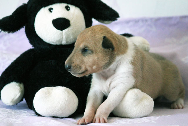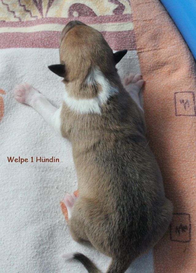 Die Asgard sind jetzt gut 2 Wochen alt. Alle Welpen haben sich prächtig entwickelt. Die Augen und Ohren sind geöffnet. S langsam werden die Kleinen von Sally mobil. Die Laufübungen werden immer kontrollierter und es wird etwas miteinander gespielt.