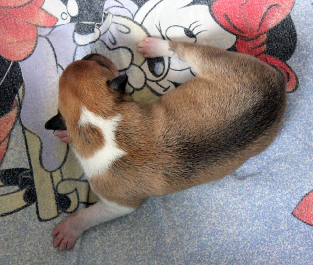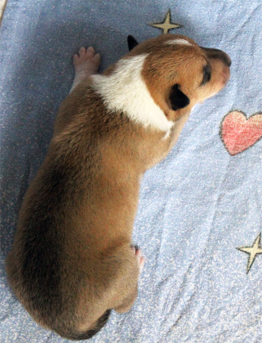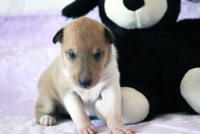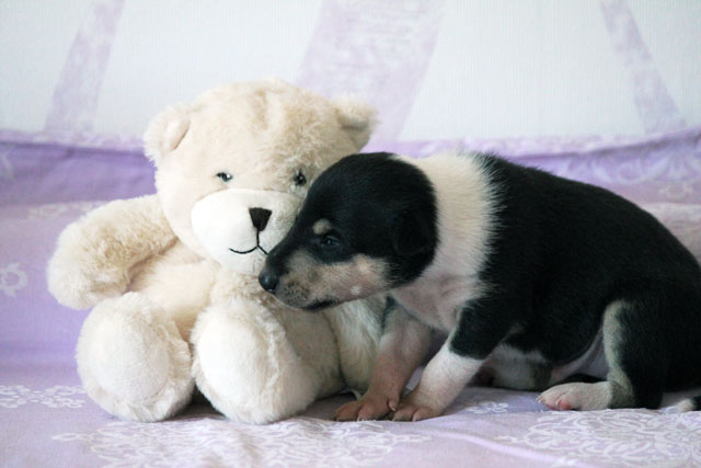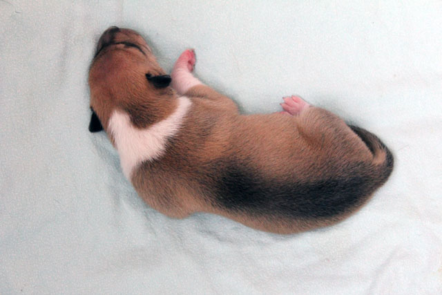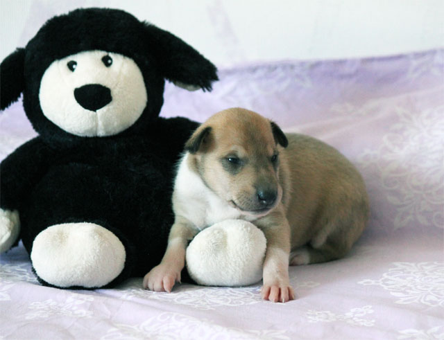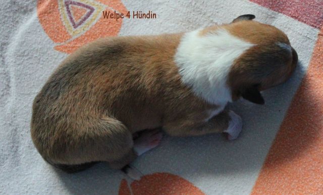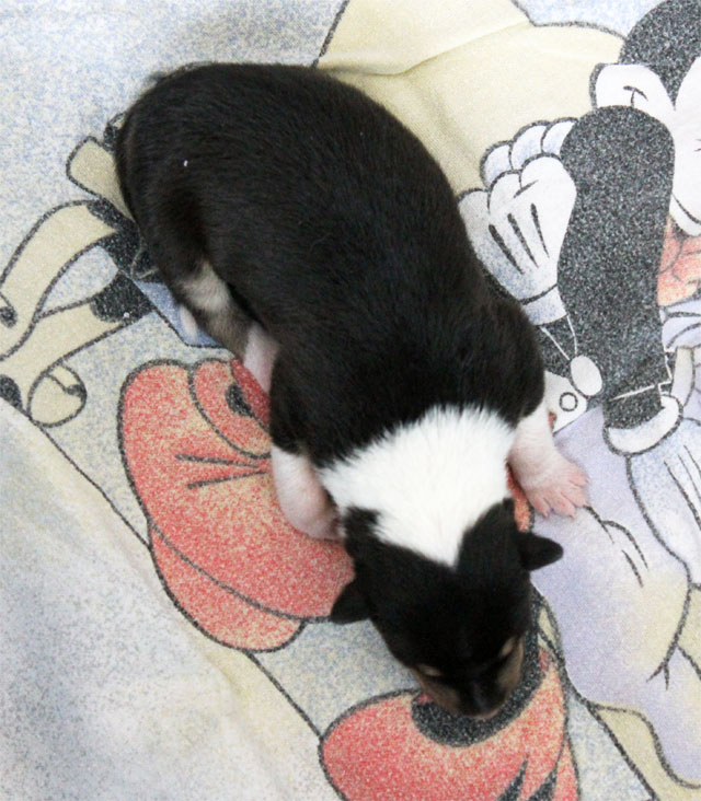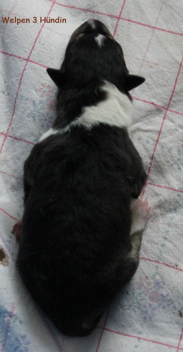 Der erste Welpe hat um 13:10 Uhr das Licht der Welt erblickt. Eine Hündin sable. Eine kräftige Hündin mit 338 Gramm. Sie hat den Weg für die anderen Welpen geebnet. Danach kamen noch weitere 4 Welpen.