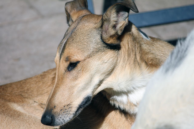 Freyja musste das Fleisch erst einmal beschnuppern ob das auch was zum fressen ist.