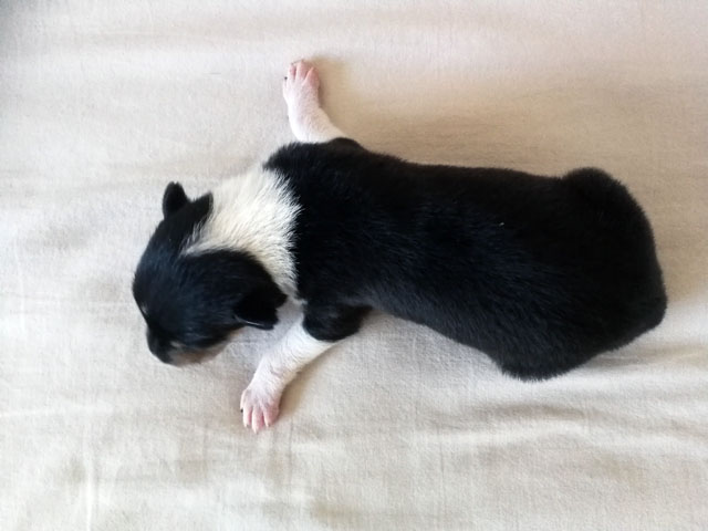Dafür hat der zuletzt geborene Rüde von Anfang an die Zitzen angenommen und auch selbstständig getrunken. Die Waage hat jeden Tag eine gute Zunahme angezeigt.