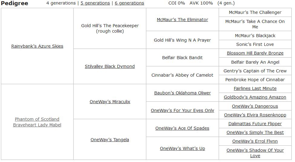 | Rainybanks Azure Skies | Phantom of Scotland Braveheart Lady Mabel |