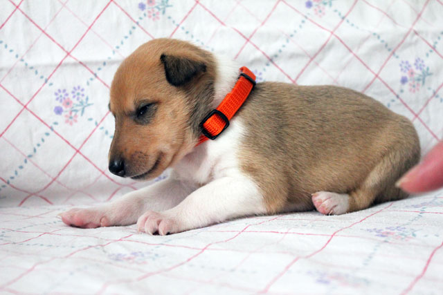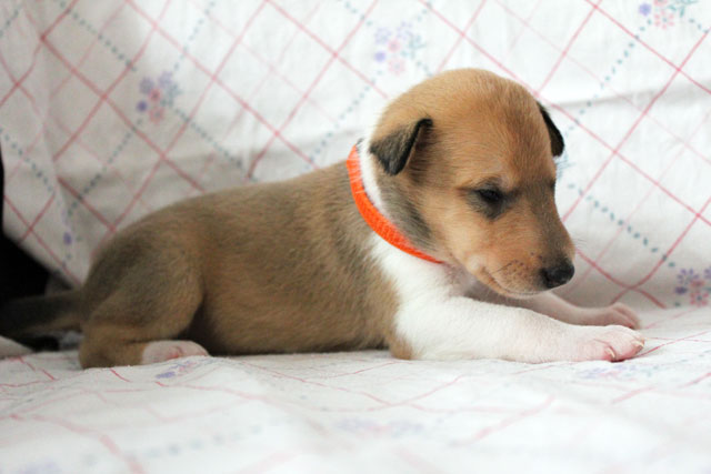 | Welpe 2 Hündin Phantom of Scotland Kings Cross Merida vergeben Halsband orange |