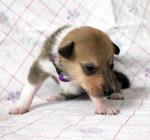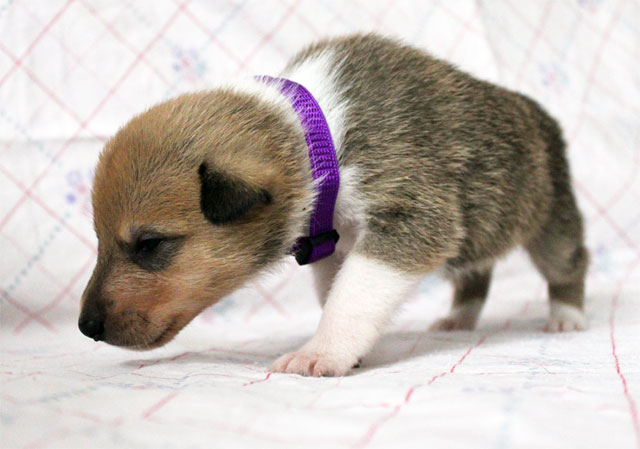 | Welpe 3 Hündin Phantom of Scotland Kings Cross Catherine vergeben Halsband lila |