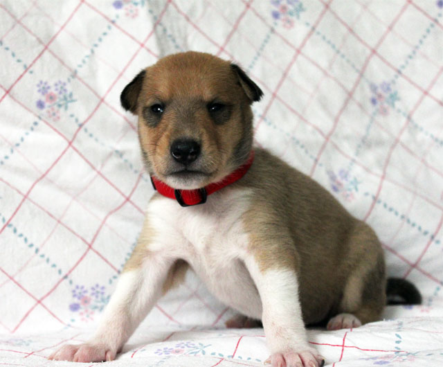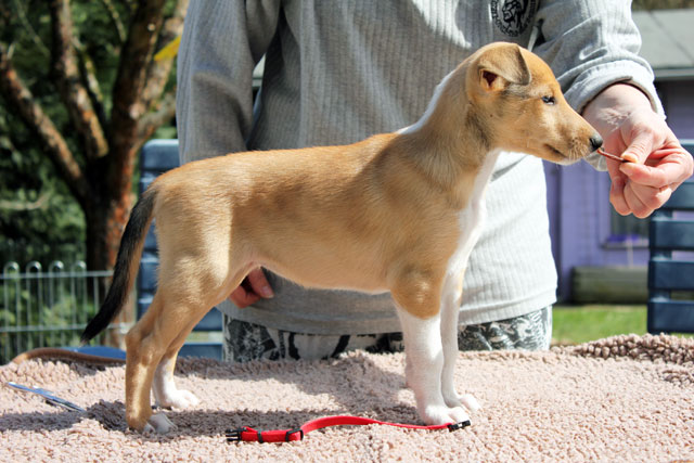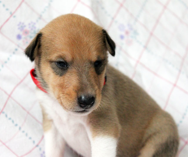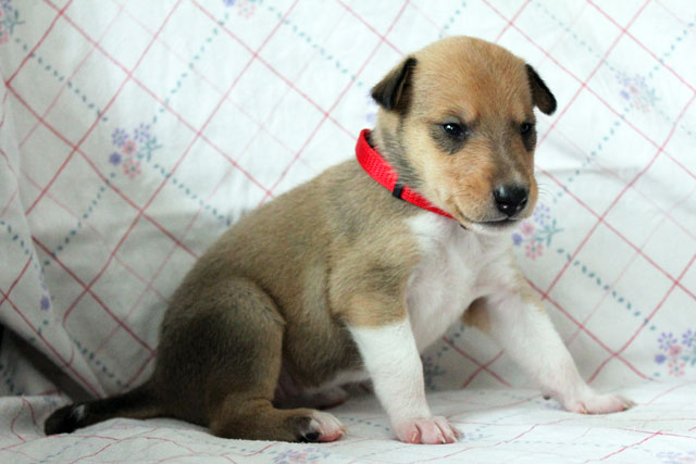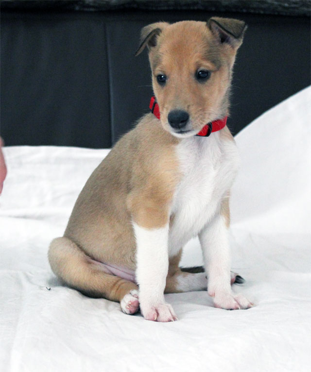 | Welpe 4 Hündin Phantom of Scotland Kings Cross Victoria vergeben Halsband rot |