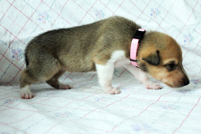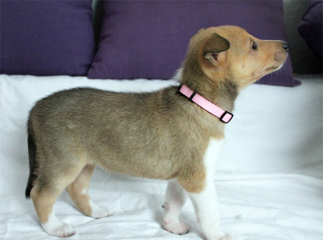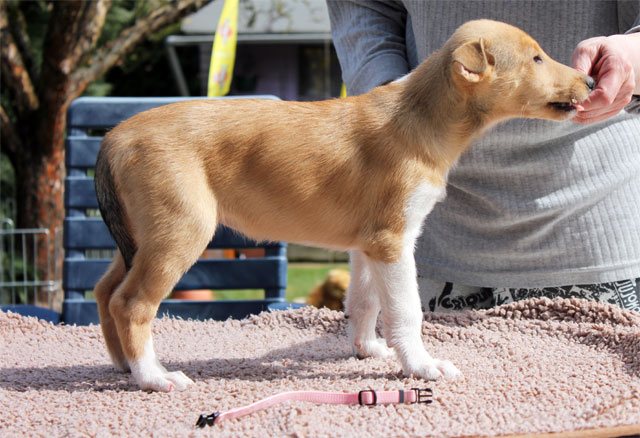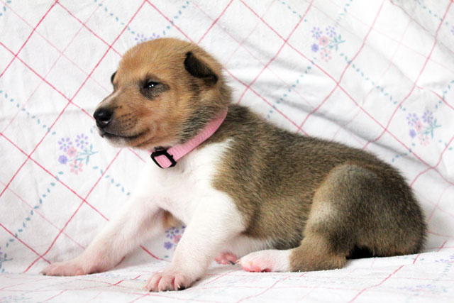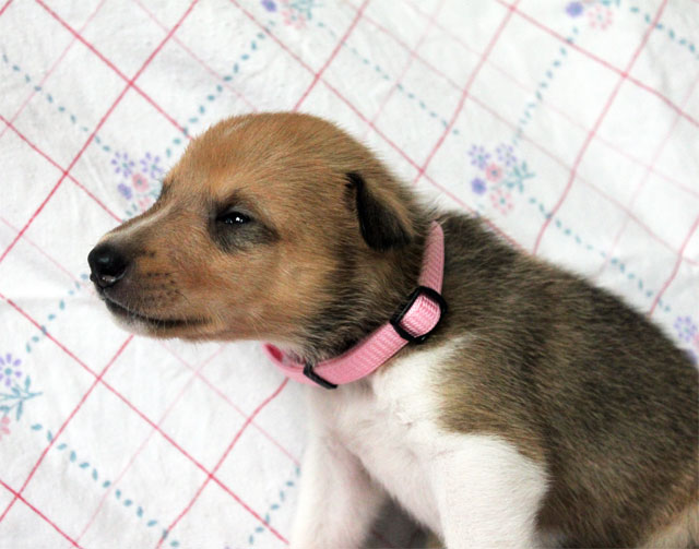 | Welpe 5 Hündin Phantom of Scotland Kings Cross Elisabeth vergeben Halsband rosa |