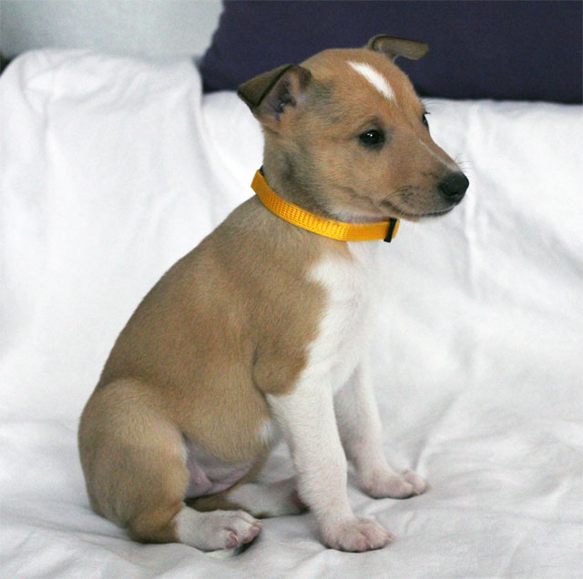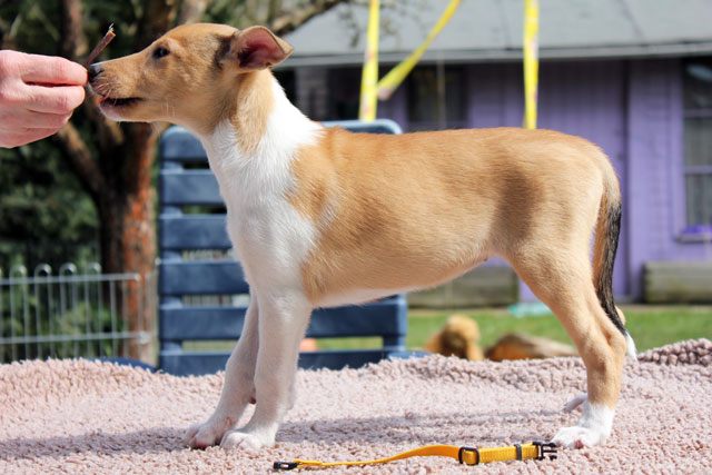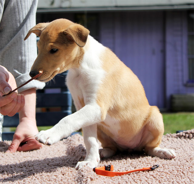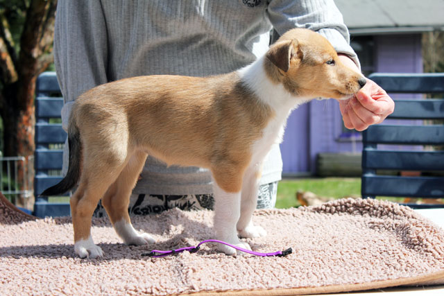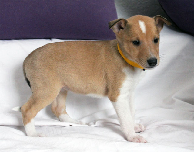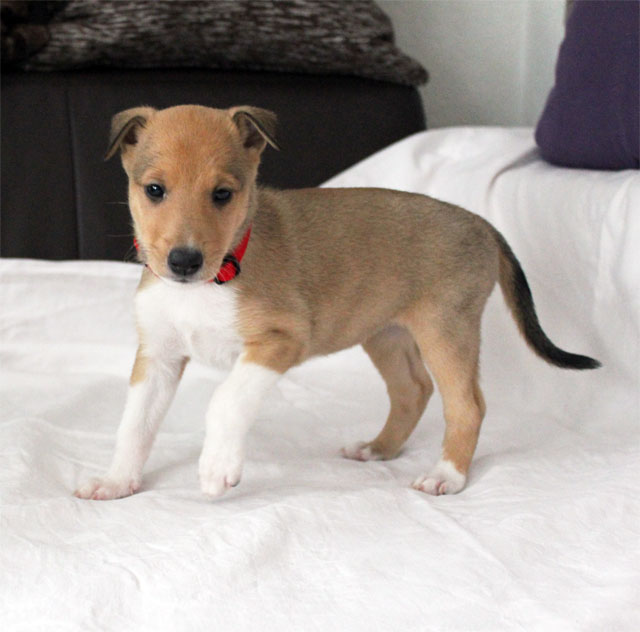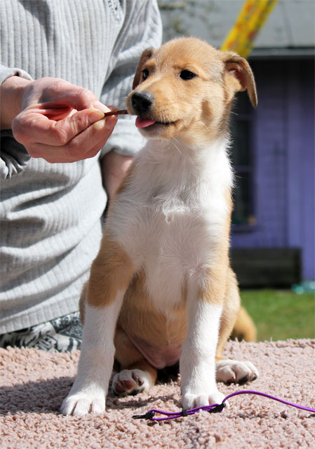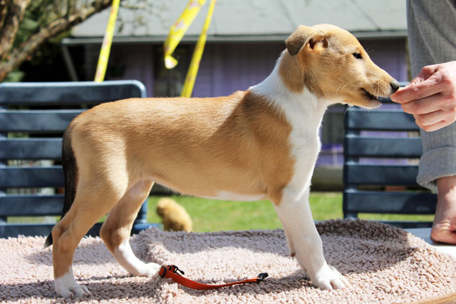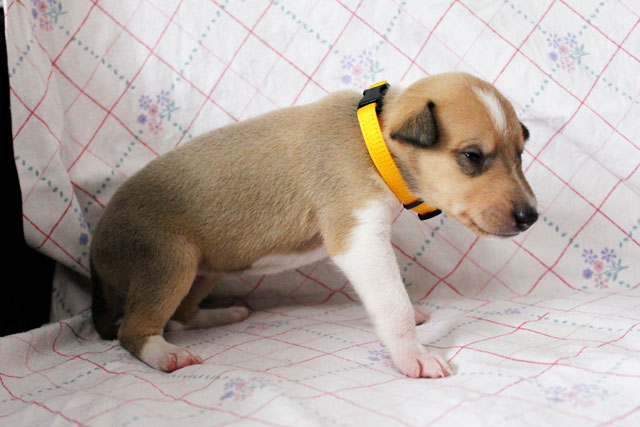 | Welpe 6 Hündin Phantom of Scotland Kings Cross Sybilla vergeben Halsband gelb |
