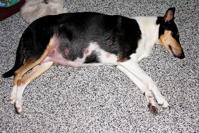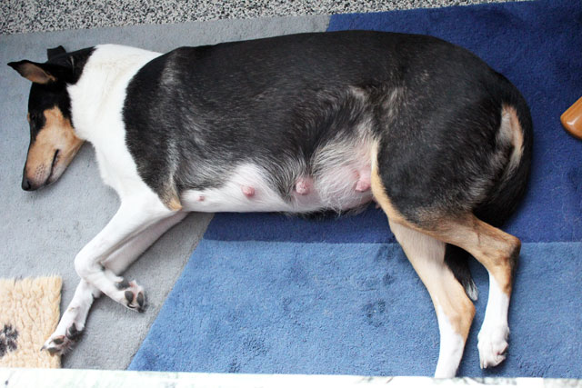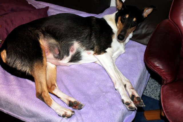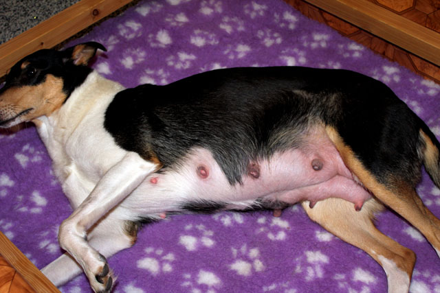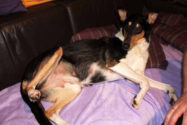 Der Bauch ist in den 4 Tagen wieder etwas dicker geworden. Kelsey`s Zitzen sind richtig dick angeschwollen und die Milchleiste entwickelt sich prächtig.