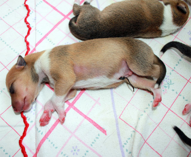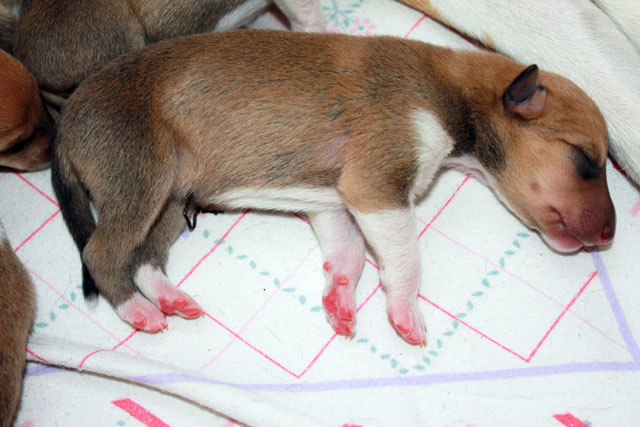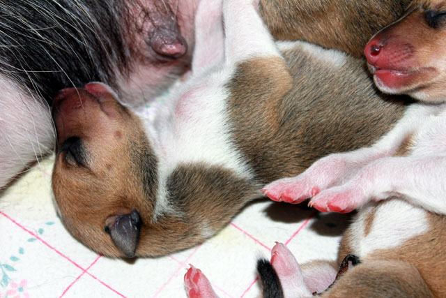 hier stellen sich die 3 Tage alten Welpen vor. In der Reihenfolge wie sie geboren wurden.