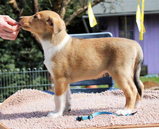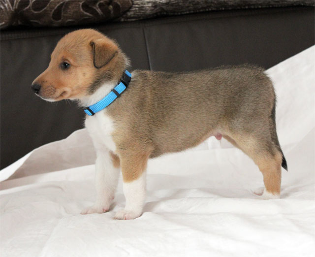 | Welpe 8 Rüde Phantom of Scotland Kings Cross Malcolm Halsband hellblau |