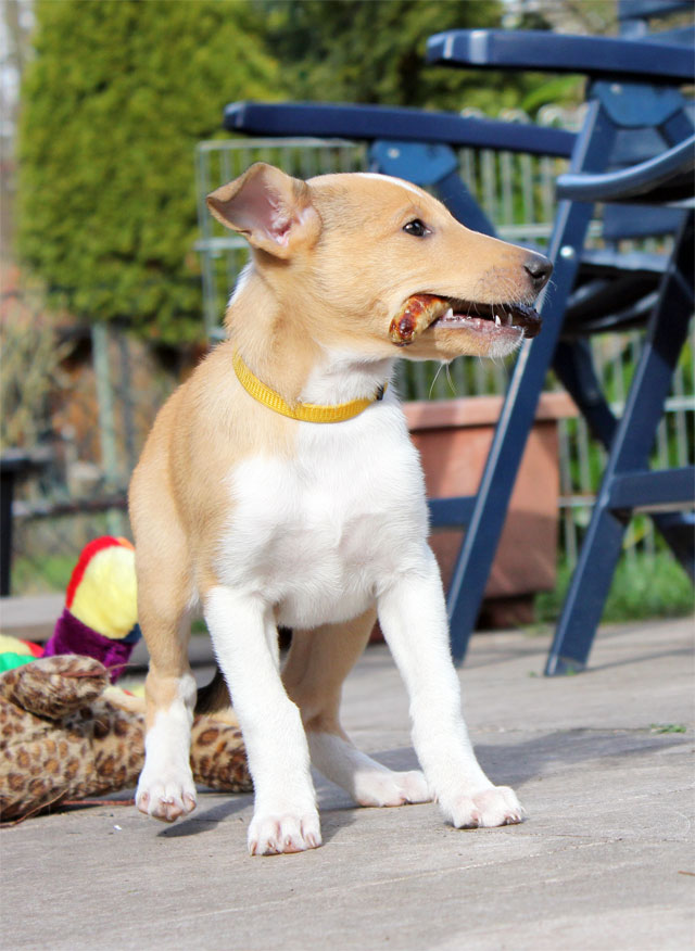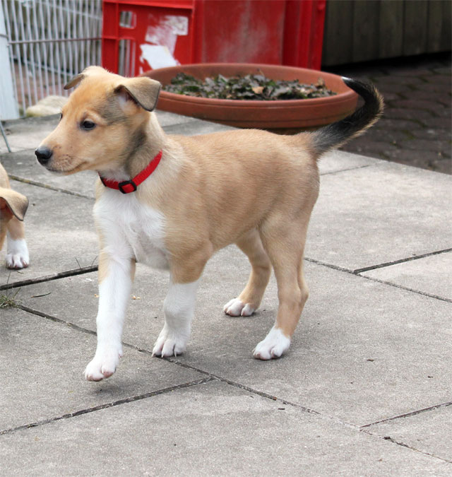 Am 18.04 zog als erster Welpe "Sybilla" aus. Sie wird nun "Chiquita" gerufen. "Chiquita" lebt nun mit "Sancho" einem Kurzhaarcollie und vielen Pferden zusammen.