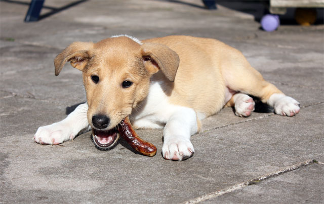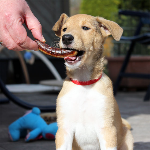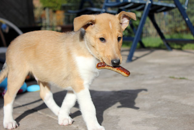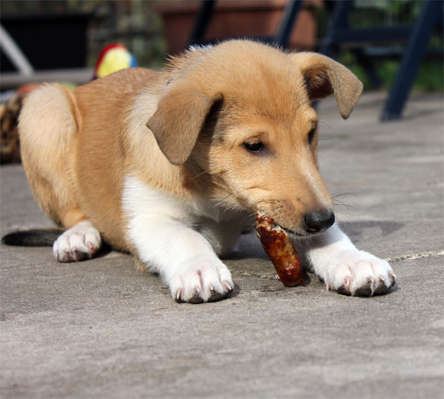 Weitere Bilder vom Bratwurstabschieds-Fressen gibt es auf unserem Welpen-Blog