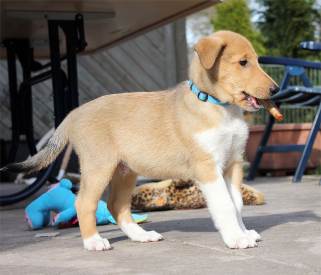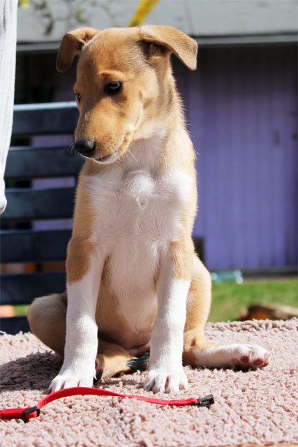 Am 19.04 zog als zweiter Welpe "Malcolm" aus. Malcolm wird nun "Karacho" gerufen, hat eine Katze als Mitbewohnerin und einen Buben als "Aufpasser".