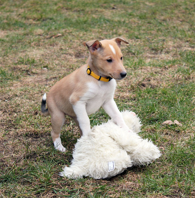 die Welpen immer nur kurze Zeit draußen. Zum Müde werden reicht es