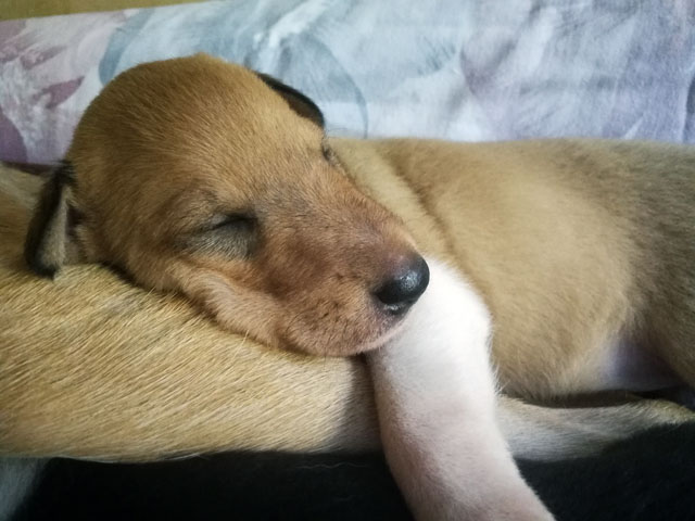 mit gut 14 Tagen ist viel los bei Sally´s Milchbar. Vor lauter kämpfen und trinken sind alle Welpen dann müde.