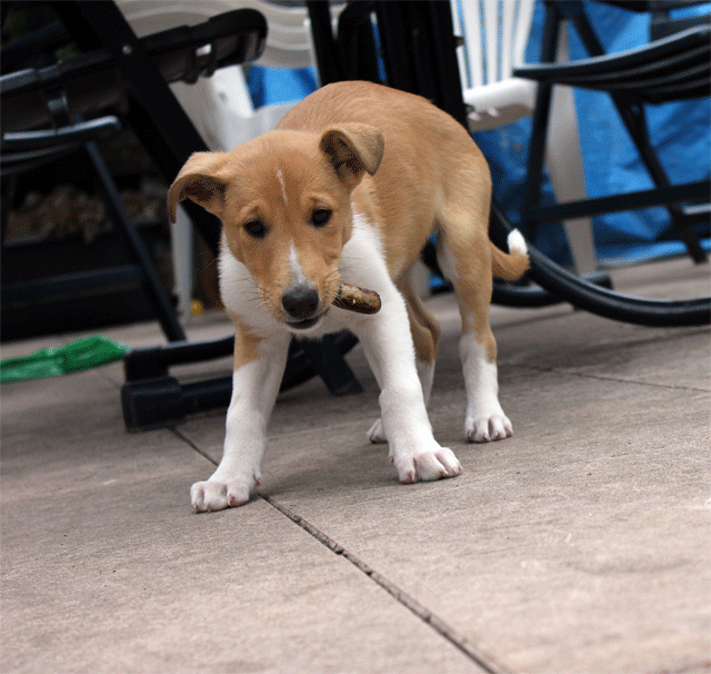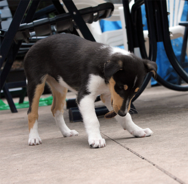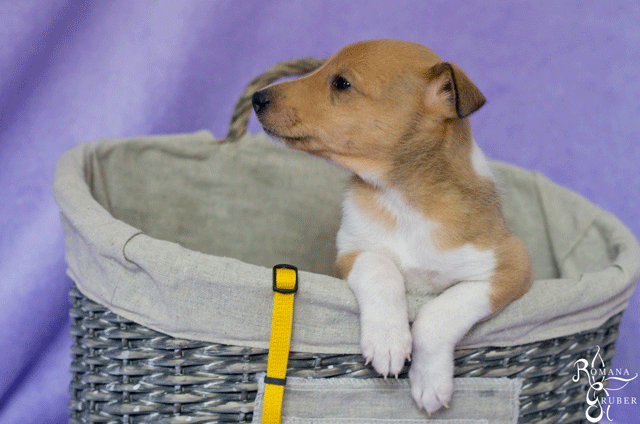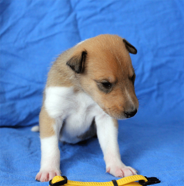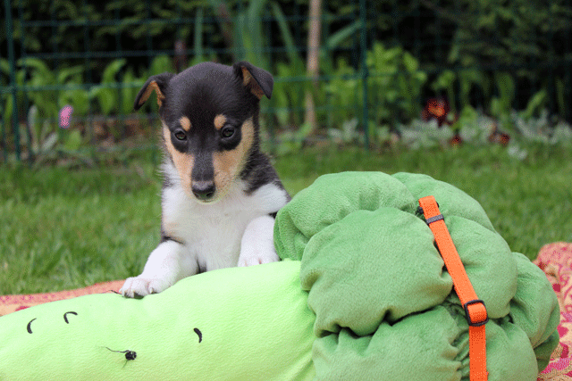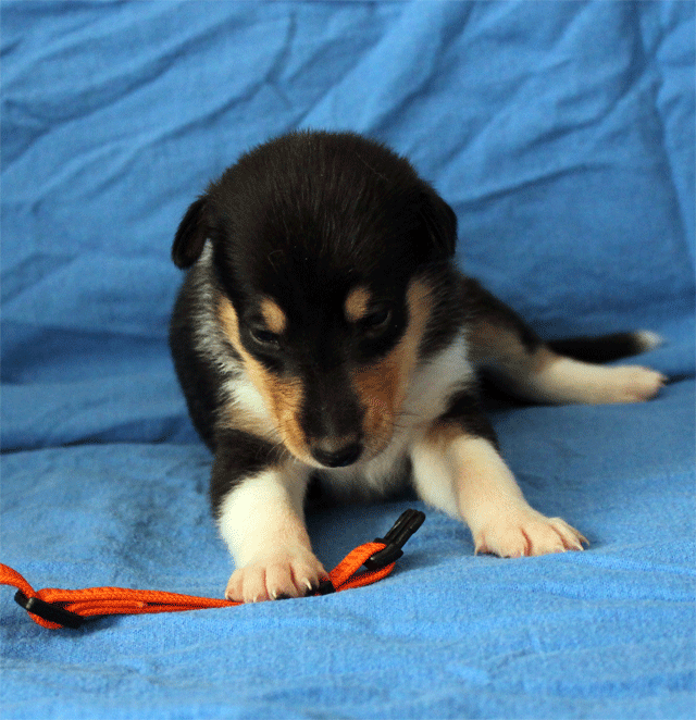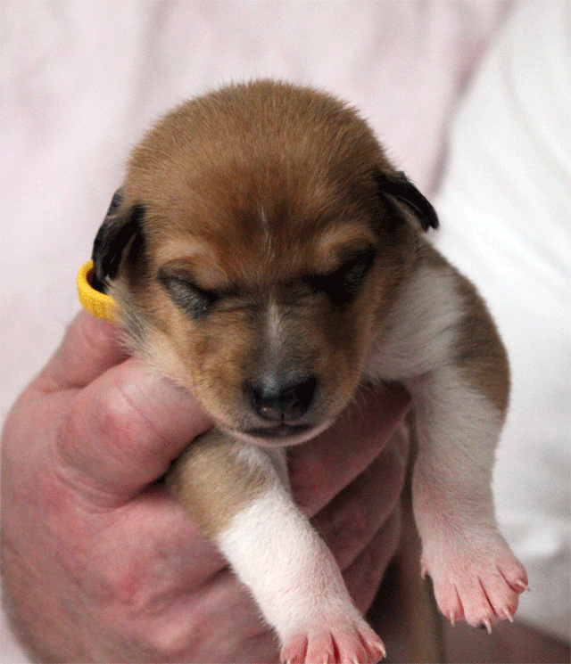 Welpe 7 Hündin sable geboren 16.46 Uhr, Halsband gelb