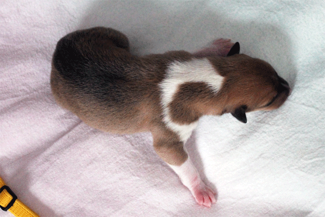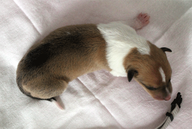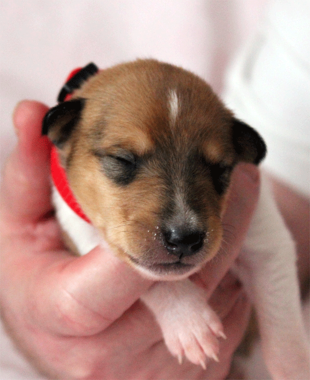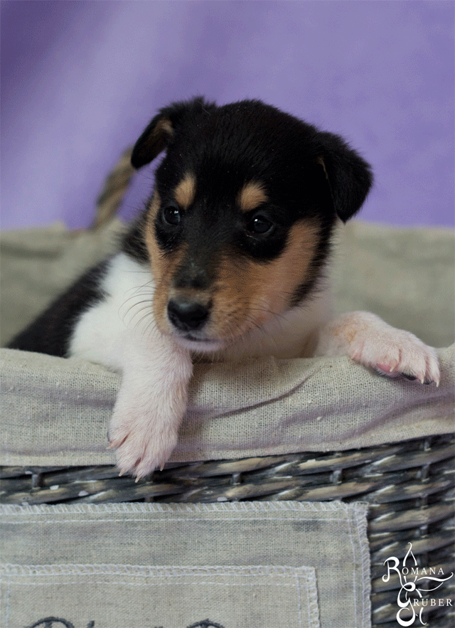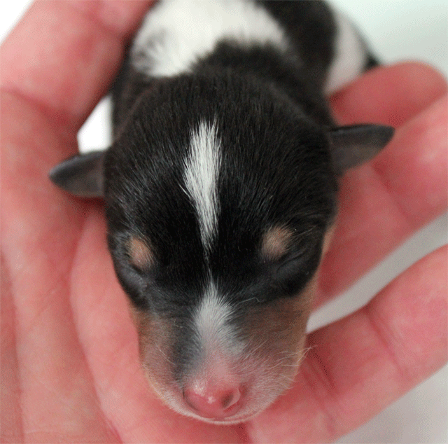Welpe 3 Hündin tricolour geboren 15.15 Uhr, 234 gr.