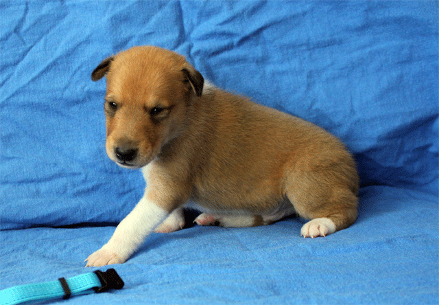 Welpe 6 Rüde sable geboren 16.26 Uhr, Halsband blau