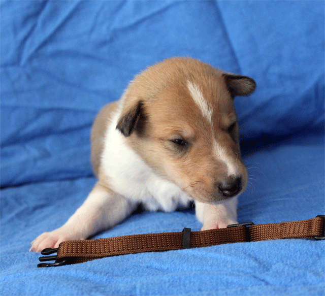 Welpe 5 Rüde sable geboren 16.01 Uhr, Halsband grau