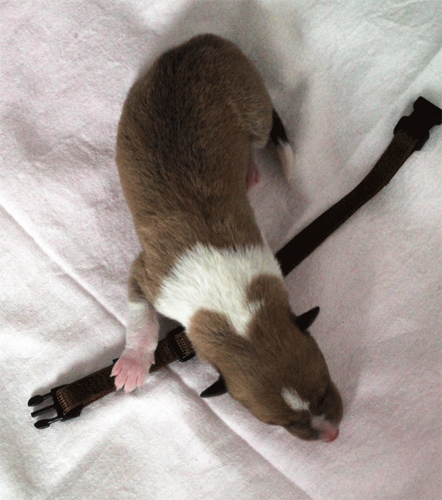 Welpe 5 Rüde sable geboren 16.01 Uhr, 280 gr./570 gr.