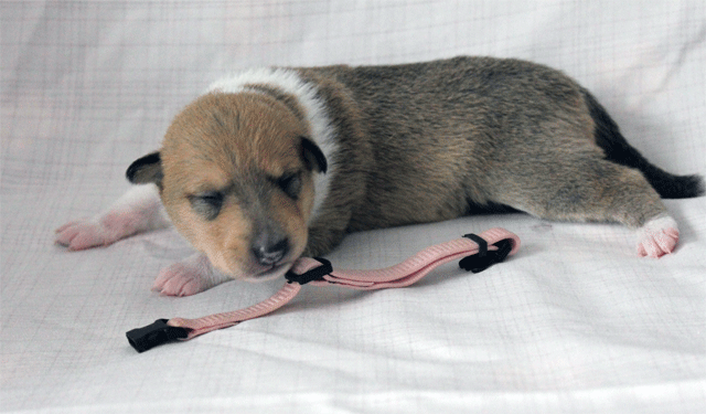 Welpe 1 Hündin sable geboren 16.30 Uhr, 280 gr.