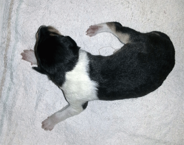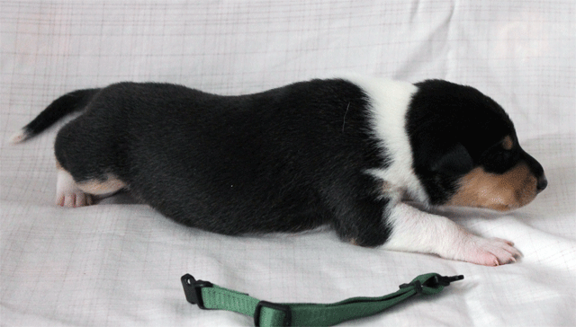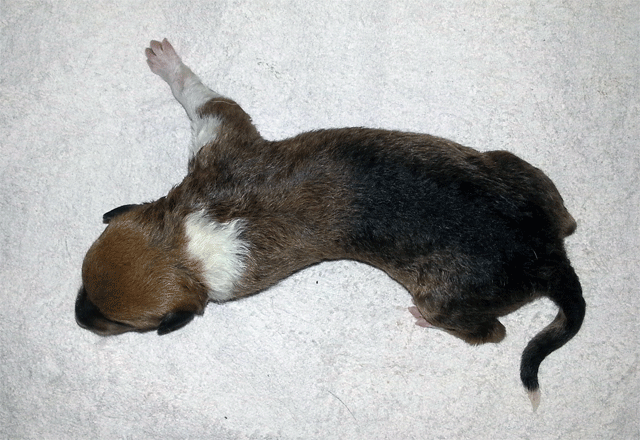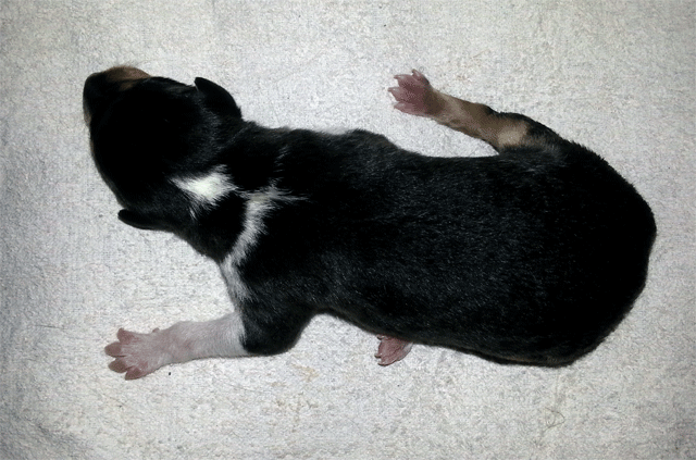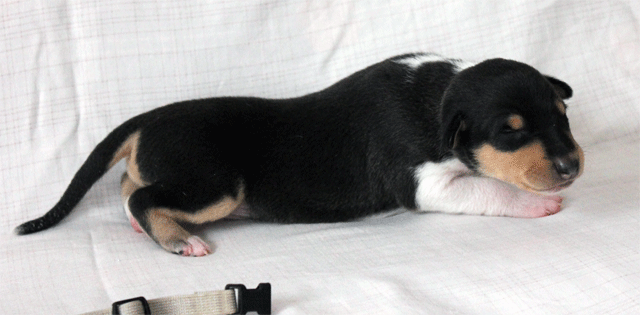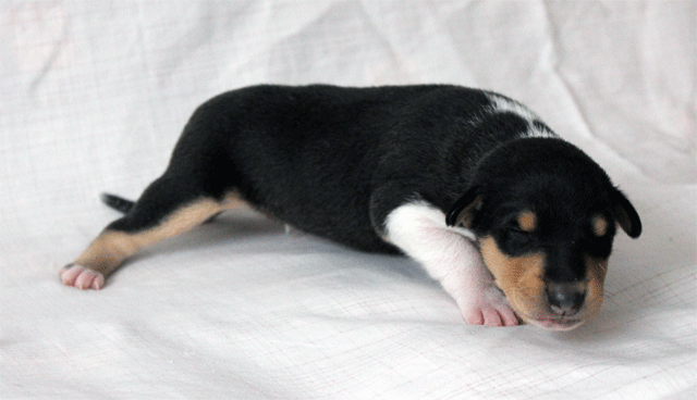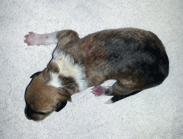 Welpe 3 Rüde tricolour geboren 17.27 Uhr, 288 gr.