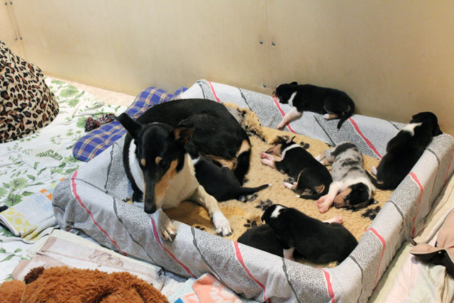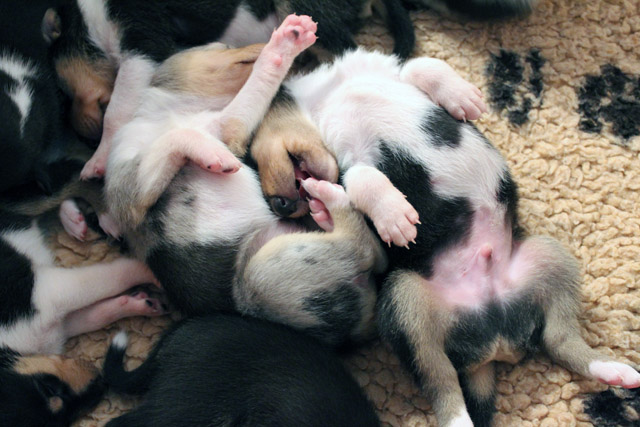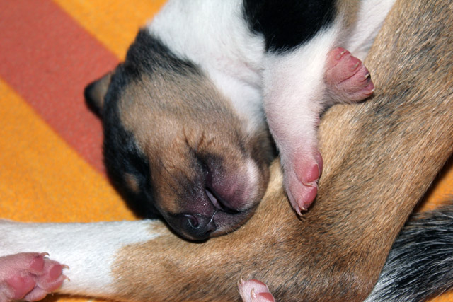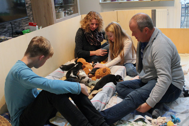 Wir "Kuscheln" jeden Abend mit den Welpen. Danach gehen die Welpen schlafen. Einige Bilder finden Sie auf unserem