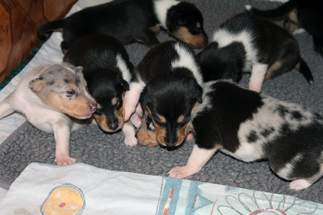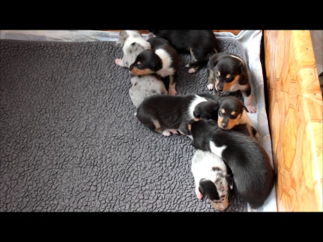 Hier sind die Welpen 4 1/2 Wochen alt.