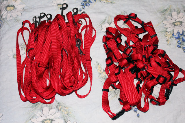 Damit sie gleich Gassi gehen können, ein Geschirr mit Leine