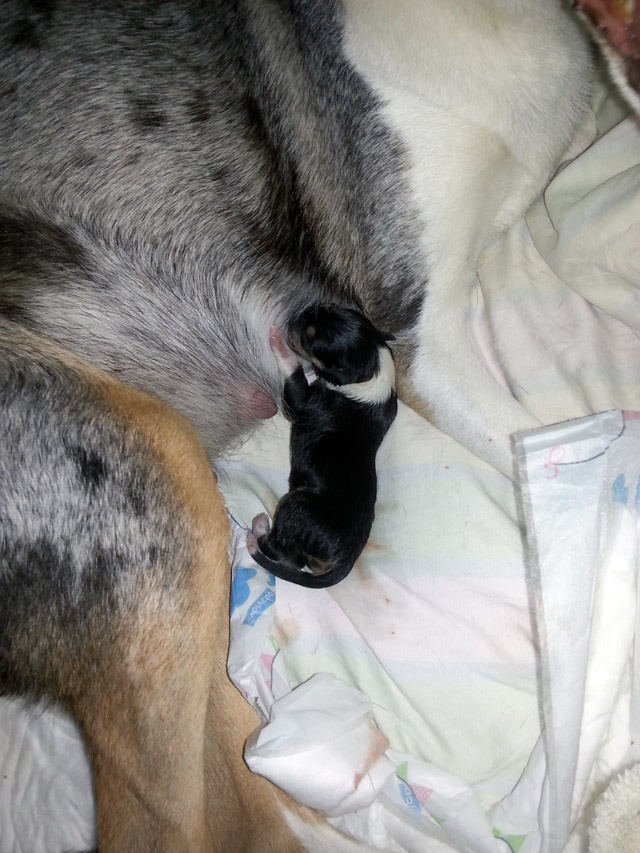 Keiner der Welpen hat abgenommen. Nun endlich gibt es die ersten Bilder mit den gerade mal 12 Stunden alten Welpen.