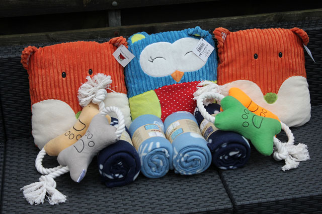 Unser Abschiedsgeschenke: ein kleine Vliesdecken verschiedene Kuscheltiere oder Spielzeug