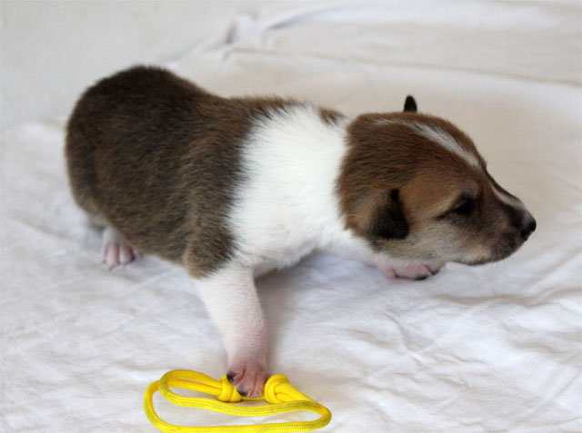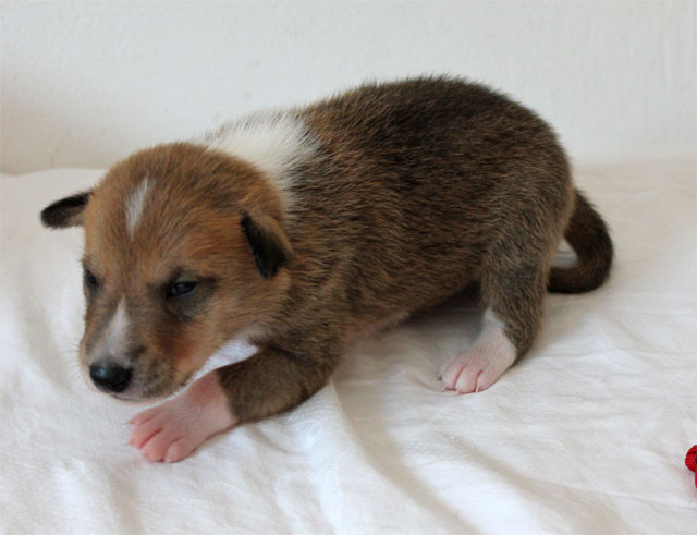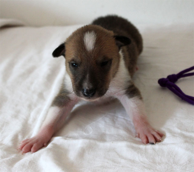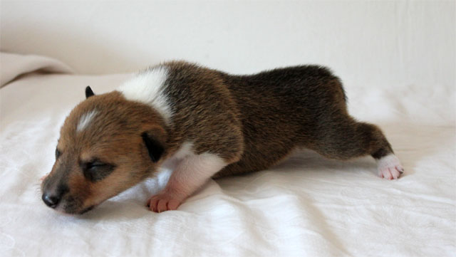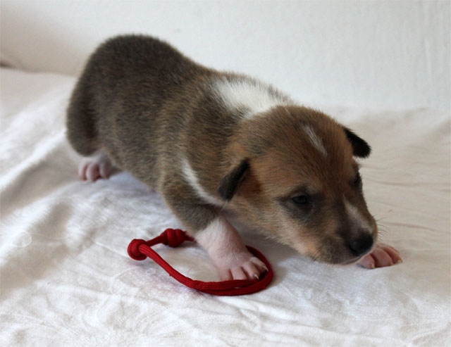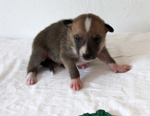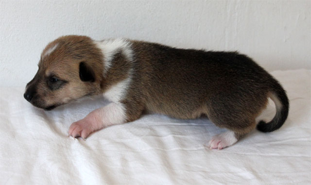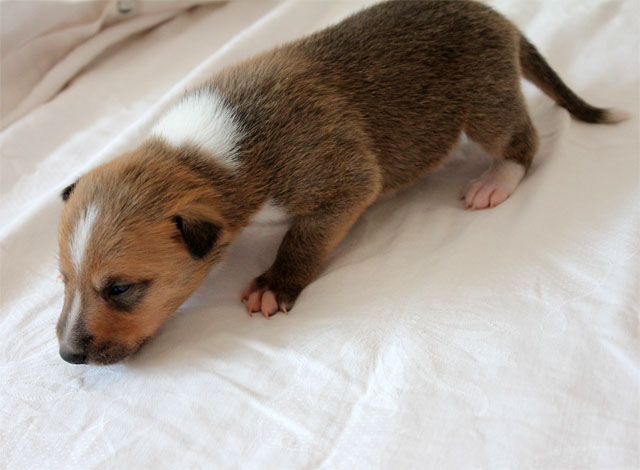 Die Welpen haben die Augen offen und machen jetzt ihre ersten Schritte, wenn auch sehr wackelig.