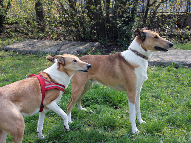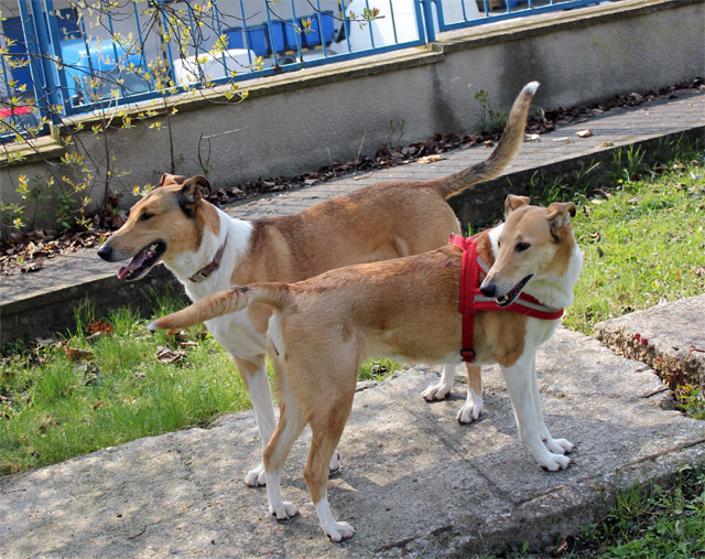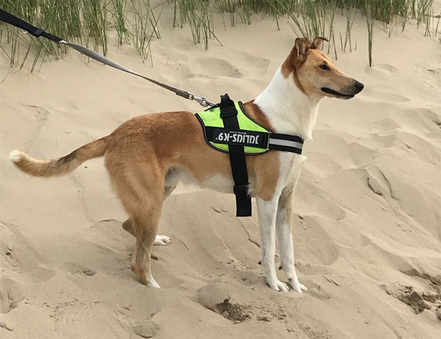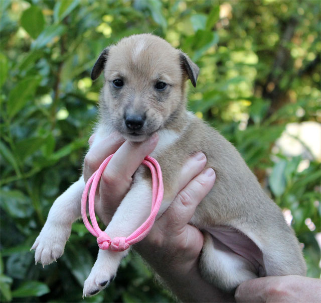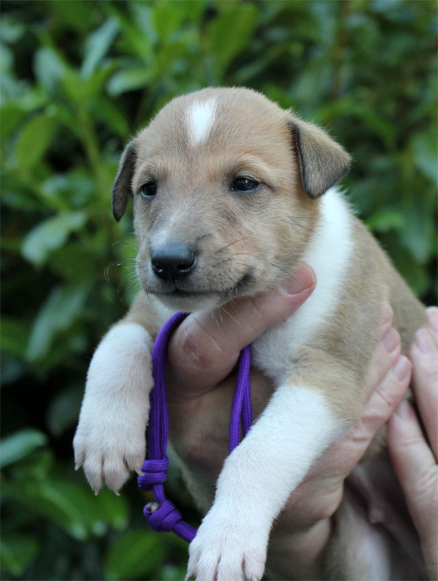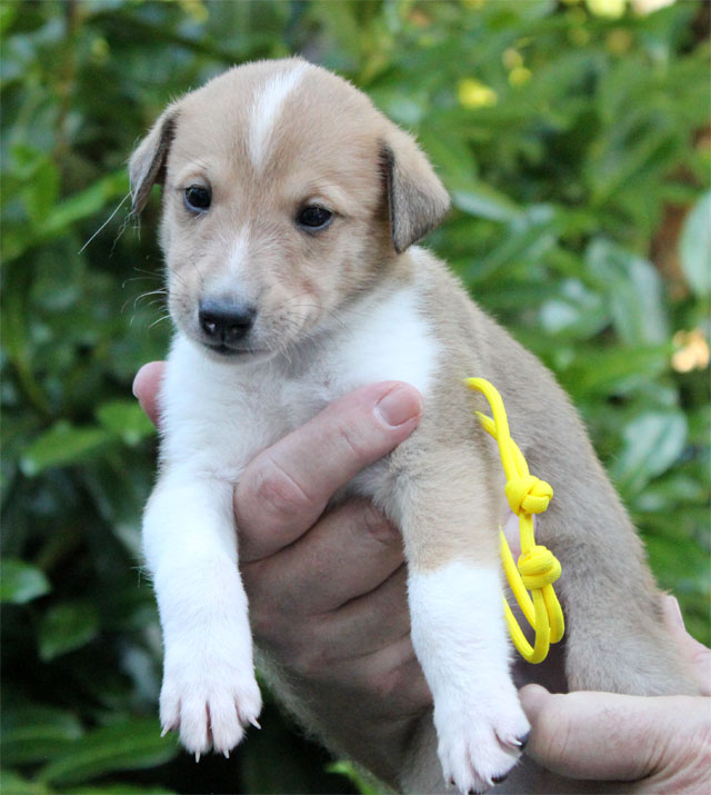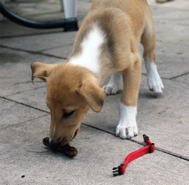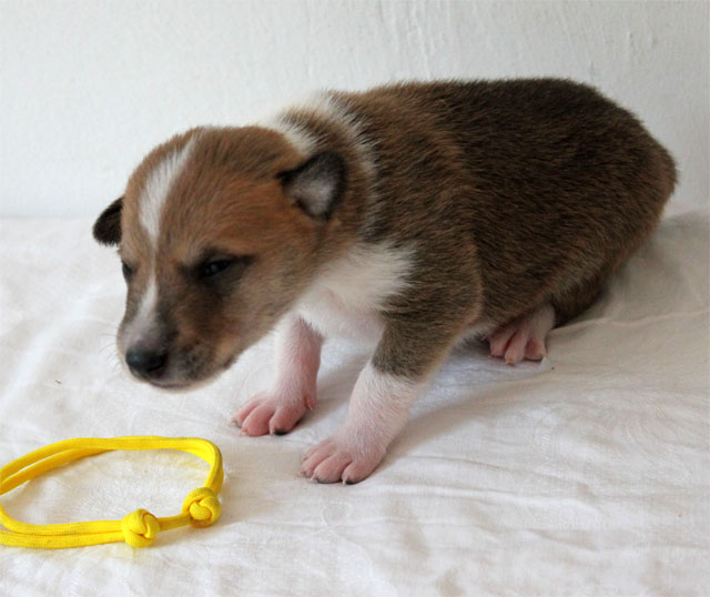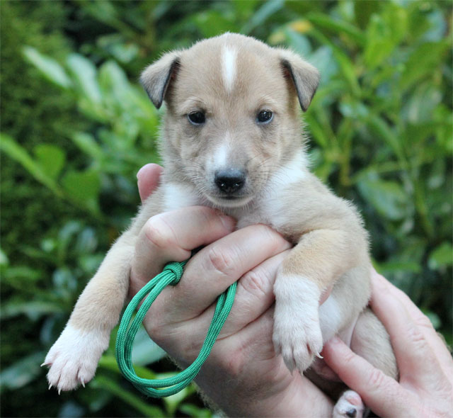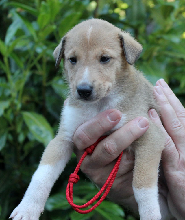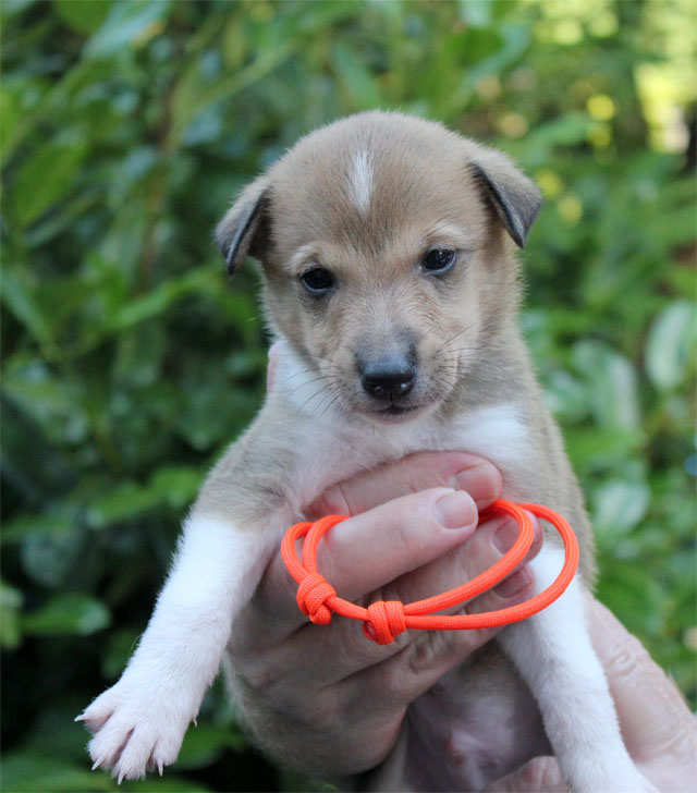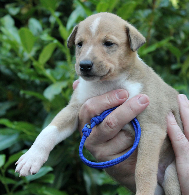 Damit die Welpen mit ihren neuen Besitzern gleich Gassi gehen können, ein Geschirr mit Leine